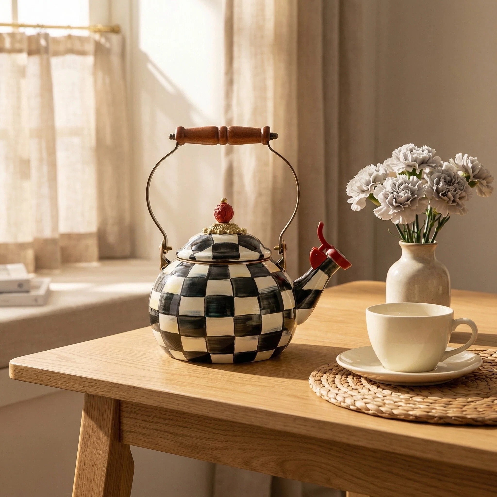 Looking for a practical and stylish gift idea for your loved ones who enjoy courtly check or cute kitchen accessories? Look no further than the Courtly Check Whistling Tea Kettle. Whether you're brewing a cup of tea or adding a pop of color to your kitchen decor, this cute tea kettle is sure to please.