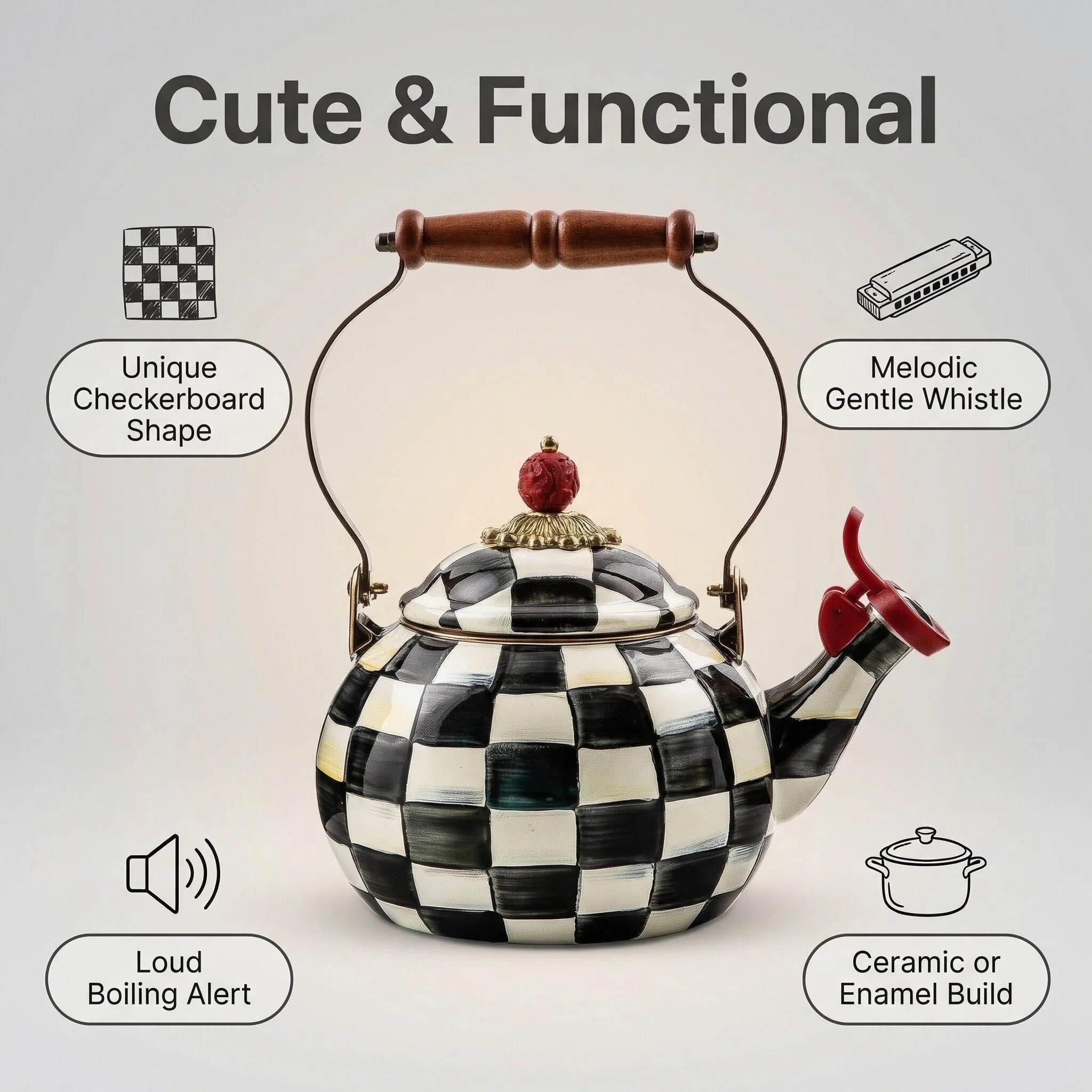Introducing the Courtly Check Whistling Tea Kettle for Stovetop - a charming and practical addition to enhance your kitchen decor.