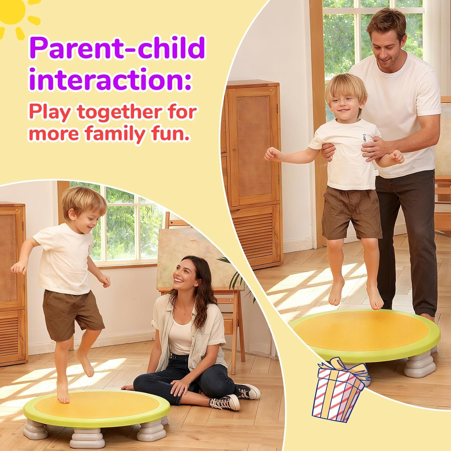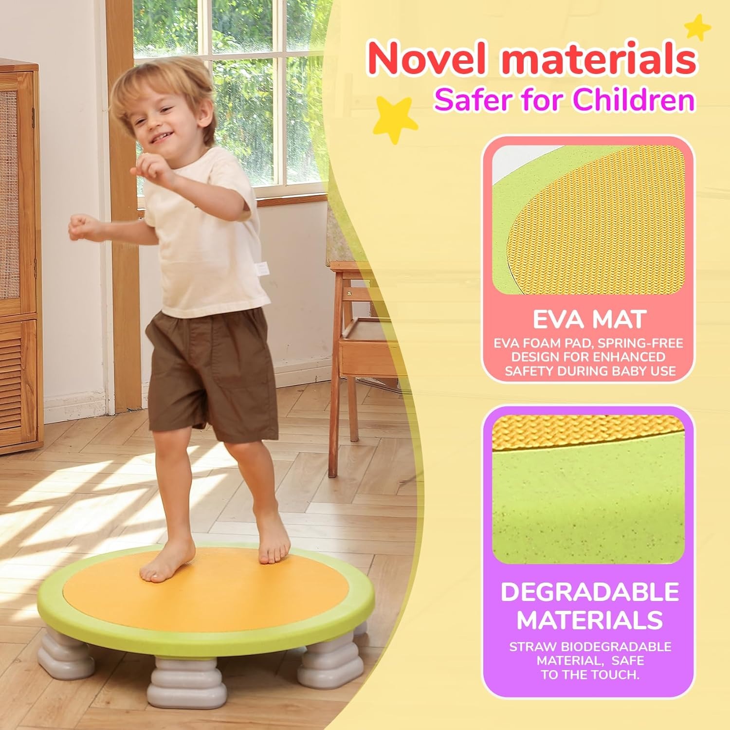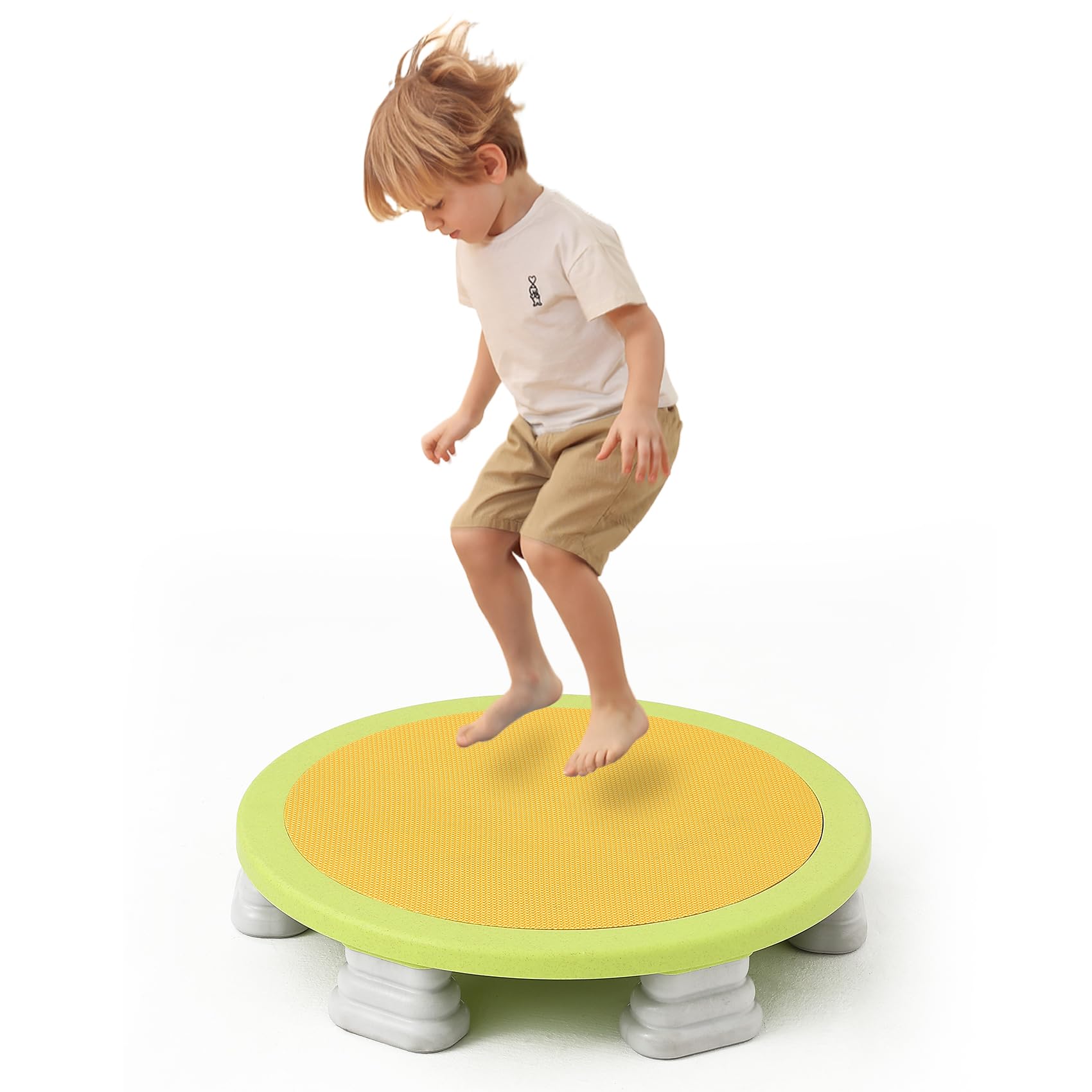 Mini Indoor Kids Trampoline: The Trampoline is 25 inches in diameter, designed for preschoolers ages 6 and up. It helps develop balance, coordination, and core strength—all while kids have fun bouncing.
