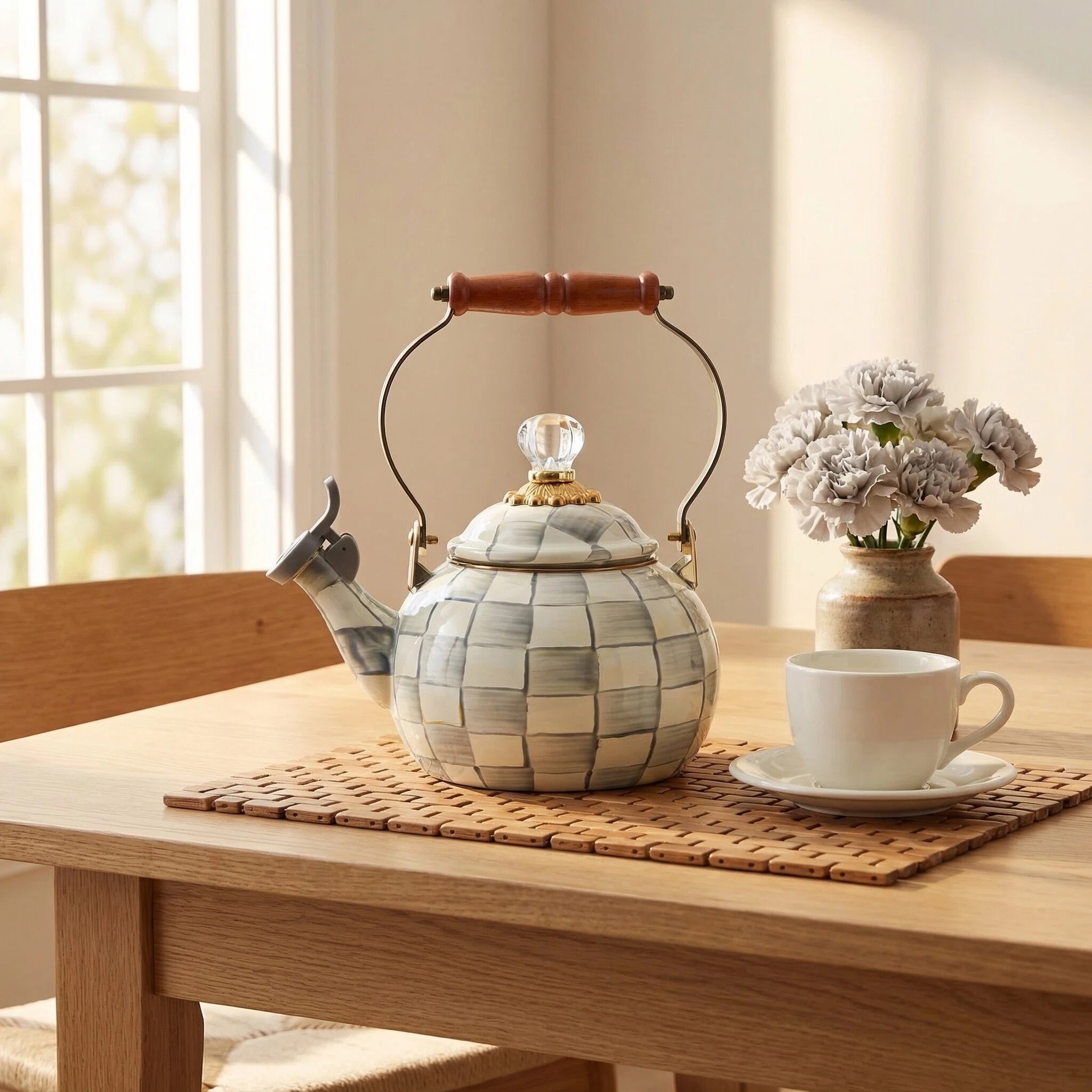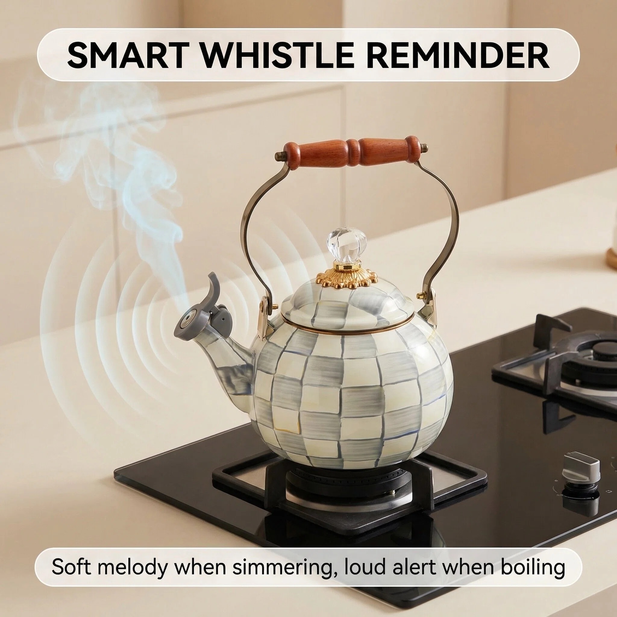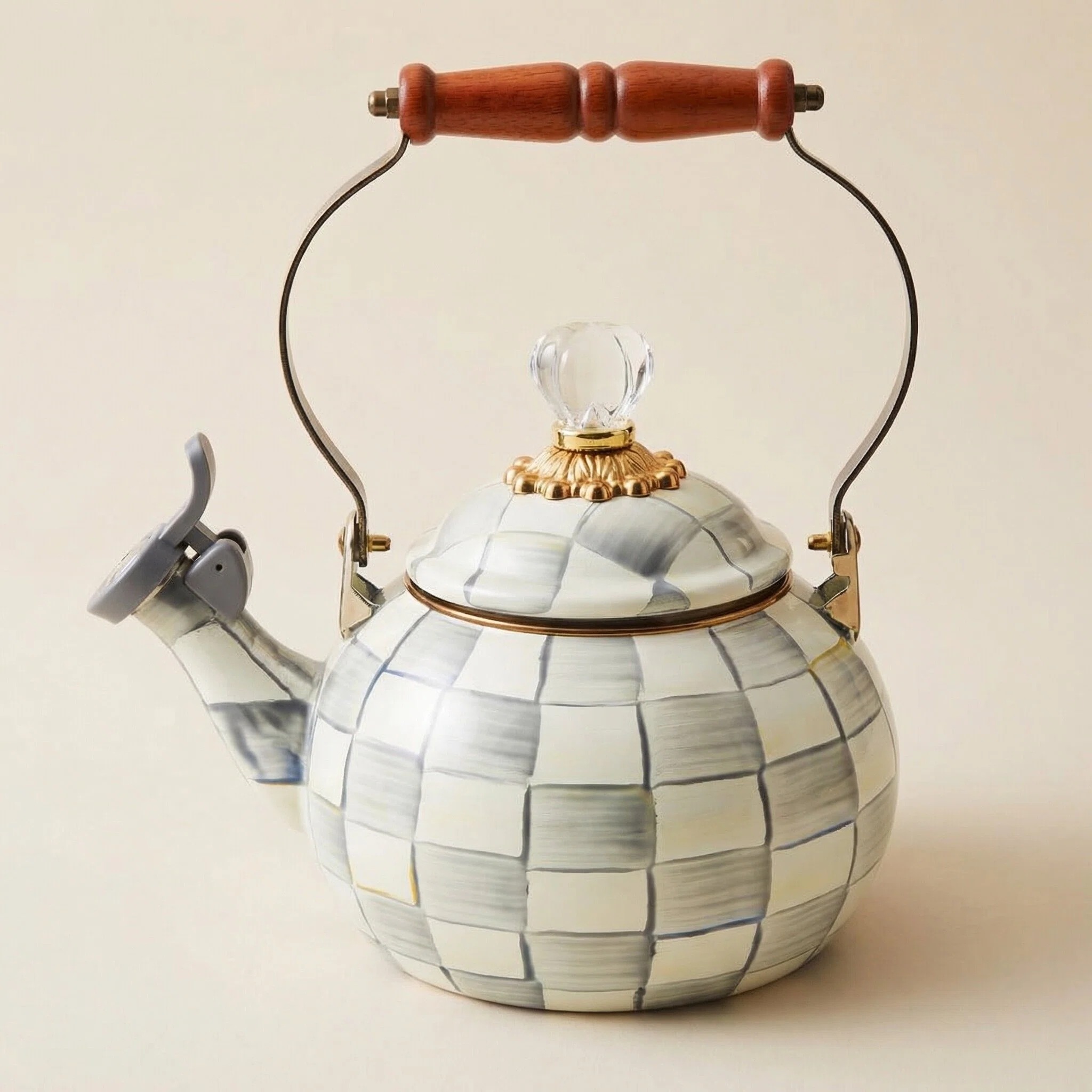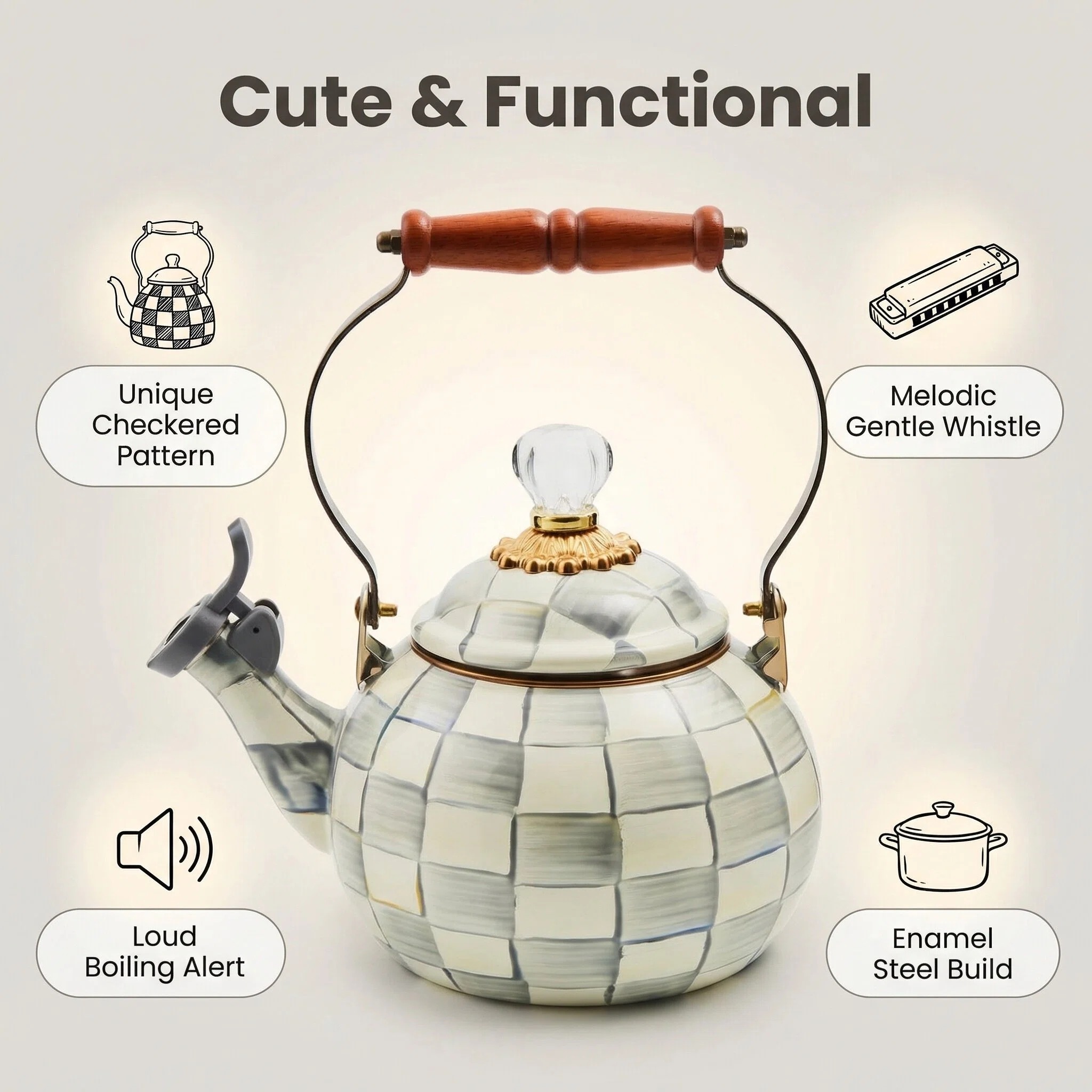 Introducing the Sterling Check Whistling Tea Kettle for Stovetop - a charming and practical addition to enhance your kitchen decor.