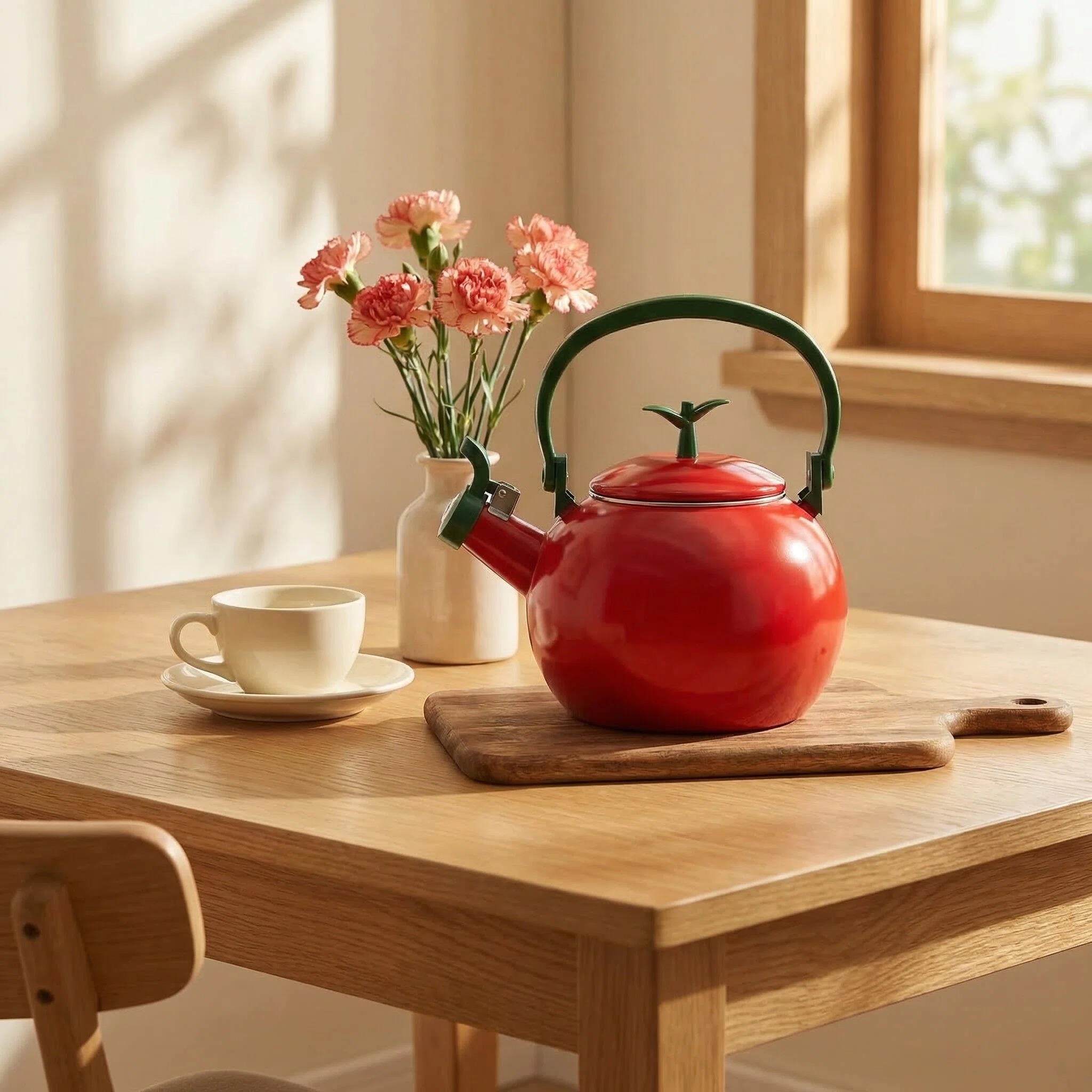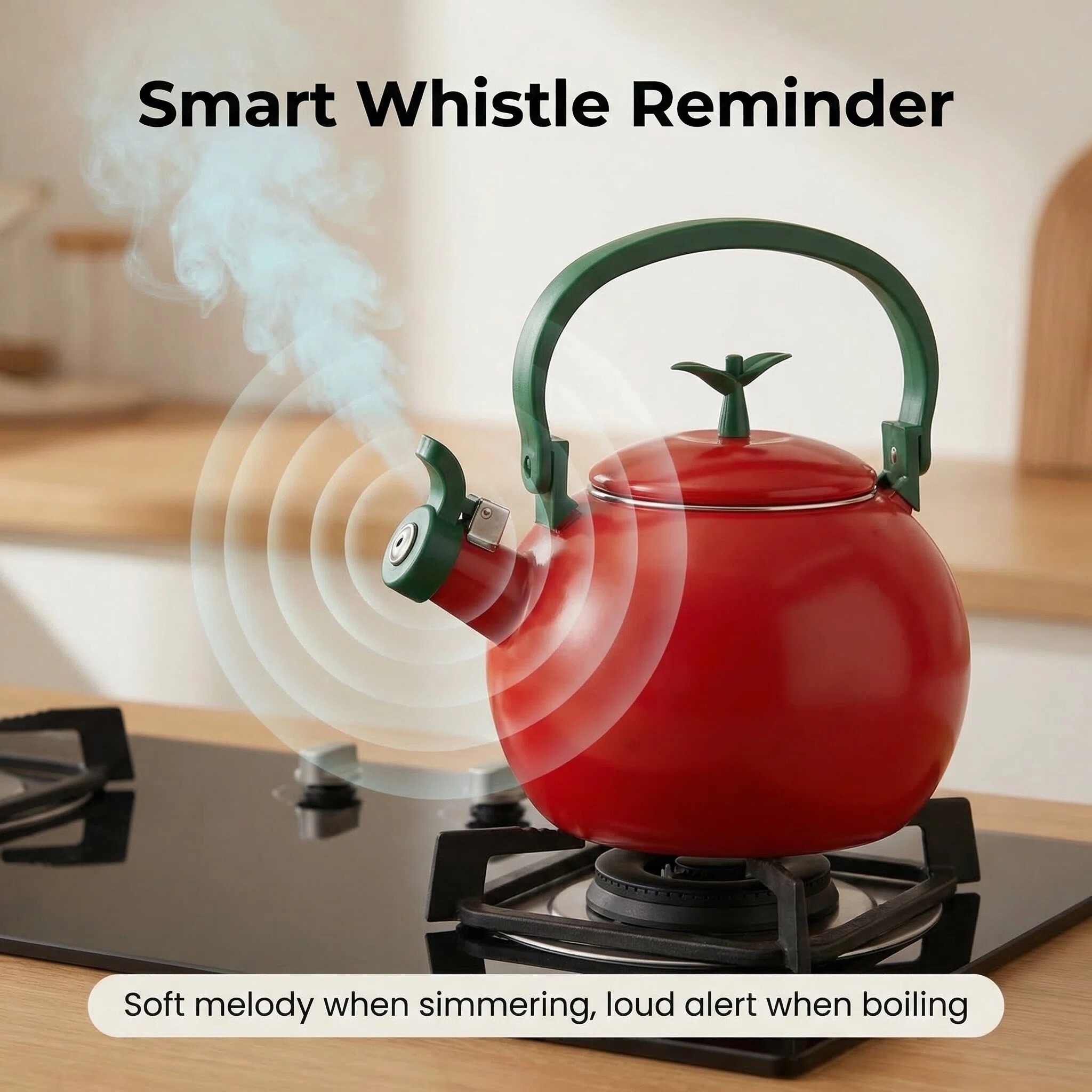 Introducing the Tomato Whistling Tea Kettle for Stovetop - a charming and practical addition to enhance your kitchen decor. With its delightful apple-shaped design and vibrant colors, this stovetop tea kettle is perfect for those who seek a touch of fruity whimsy in their kitchen accessories.